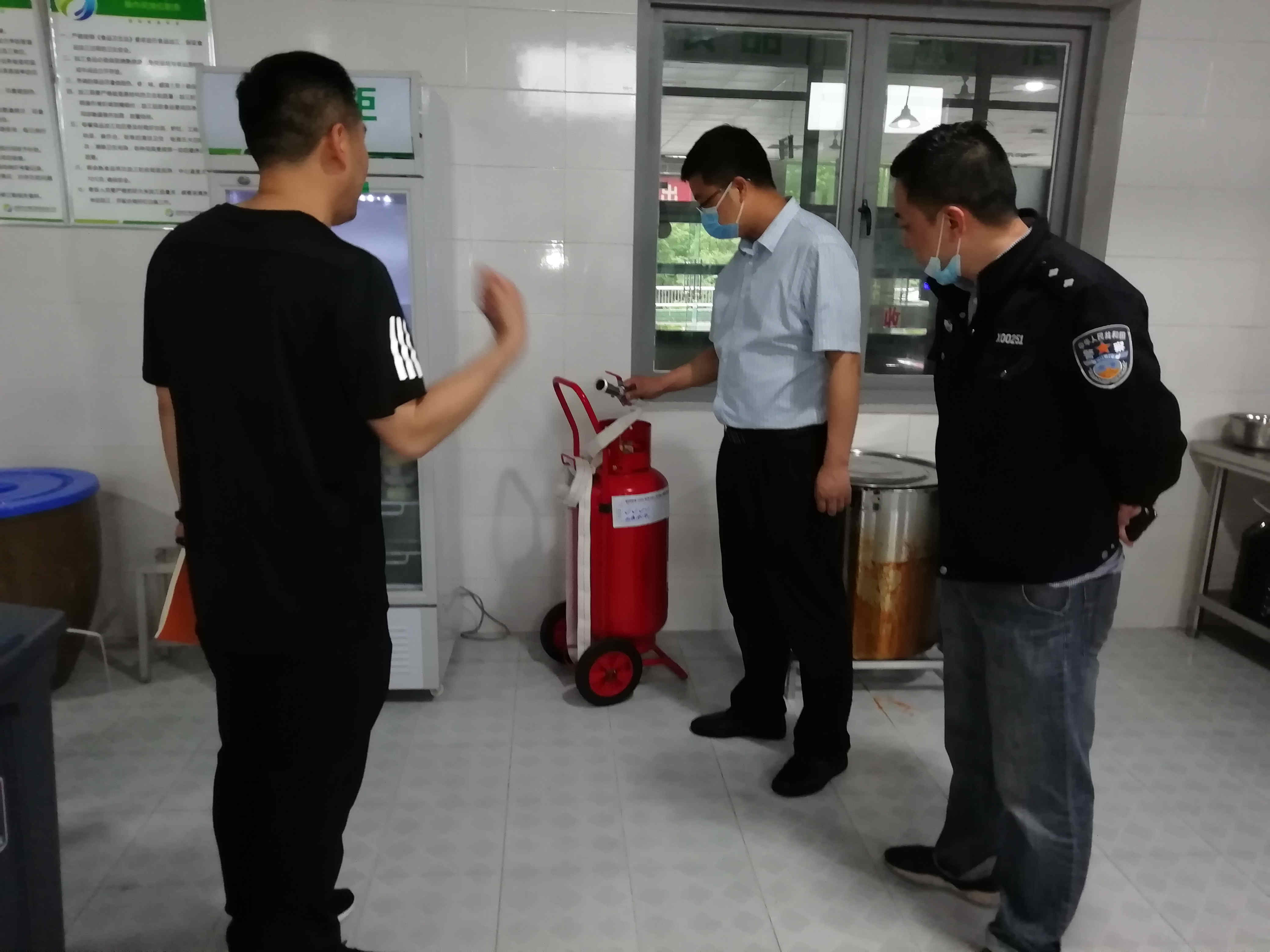 在检查过程中,学校贾相成副校长还专门就我校消防安全和森林防火教育工作作了详细汇报。对我校“兼顾整体、突出重点”的消防工作思路、特别在重点区域设置微型消防站、特殊环境配置手推式专用大灭火器的经验与做法,谢局长现场给予了充分肯定,并建议其他学校借鉴推广。