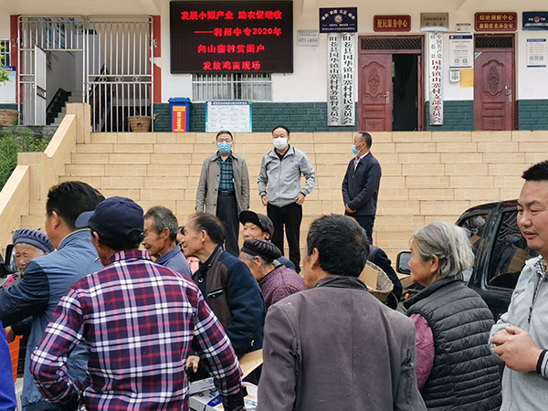 为深入贯彻落实中央、省、市关于打赢脱贫攻坚战决策部署,结合贫困户自身发展能力实际,5月9日,学校校长李锦、党委书记杜建新、副校长苏克难与帮扶责任人来到我校所帮扶村,为贫困户发放鸡苗共计1660只,支持他们积极发展小短产业,拓宽稳产增收渠道,巩固脱贫攻坚成效。