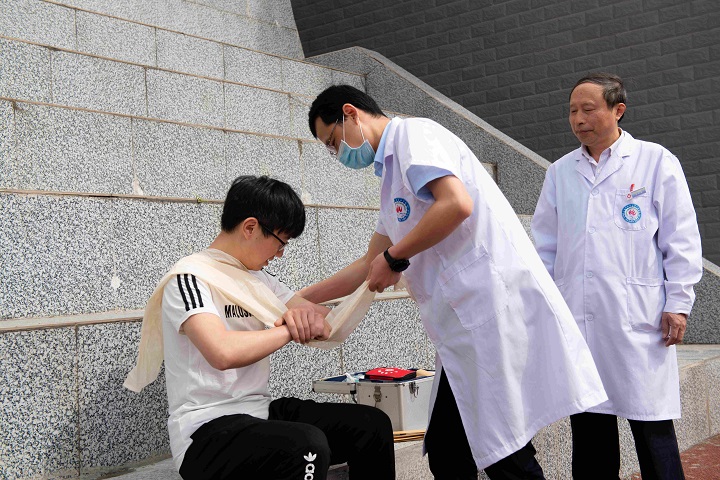 怀念逝者,珍惜当下,地震及各种灾害再次警钟,演练结束后,学校还举行了外伤包扎抢救演练及消防安全知识讲座。介于疫情原因,“防灾减灾”日防震应急演练全校将分批次进行,5月13日上午2017、2018级还将举行同样的应急疏散演练及培训活动。