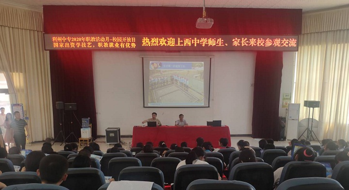 在学校贾相成副校长的安排下,农林建筑教学部抢抓机遇,趁势宣传,农林建筑教学部邓松主任对建筑工程施工、工程造价两个专业进行全面宣传。从专业学习的轻松,就业的容易,创业道路的平坦,升学的百分百,全方位举证说明,特别是近几年来学校培养的优秀建筑企业家的案例展示,说得上西中学120多名同学动心不已,大有立即报名就读建筑专业的意愿。