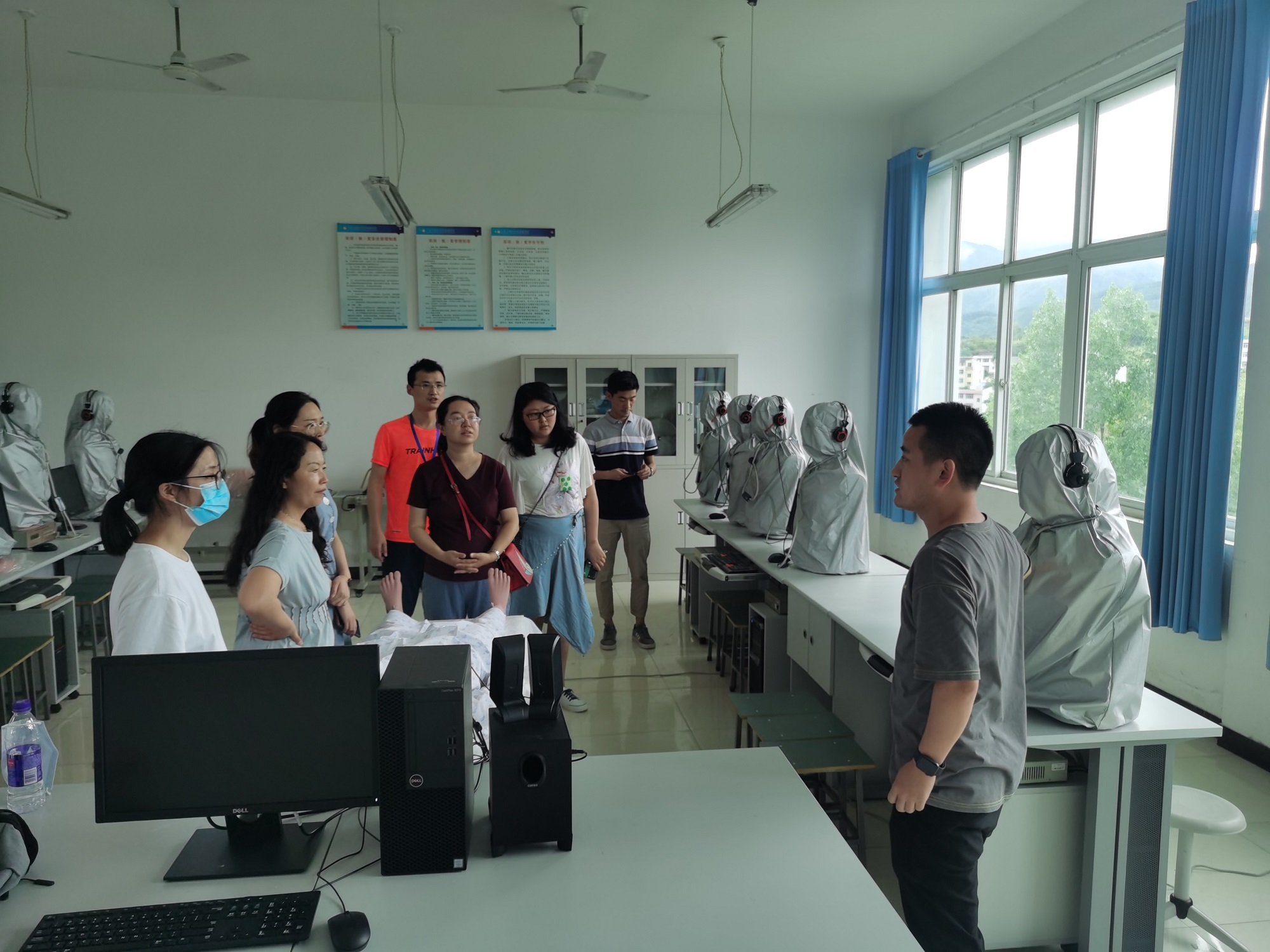 为打造专业教学团队,创新教师队伍培养培训机制,实习实训科组织医卫部全体专业课和专业基础课教师于2020年6月16日下午,在学校医学实训中心开展VR虚拟操作和健康评估实训设备使用培训。