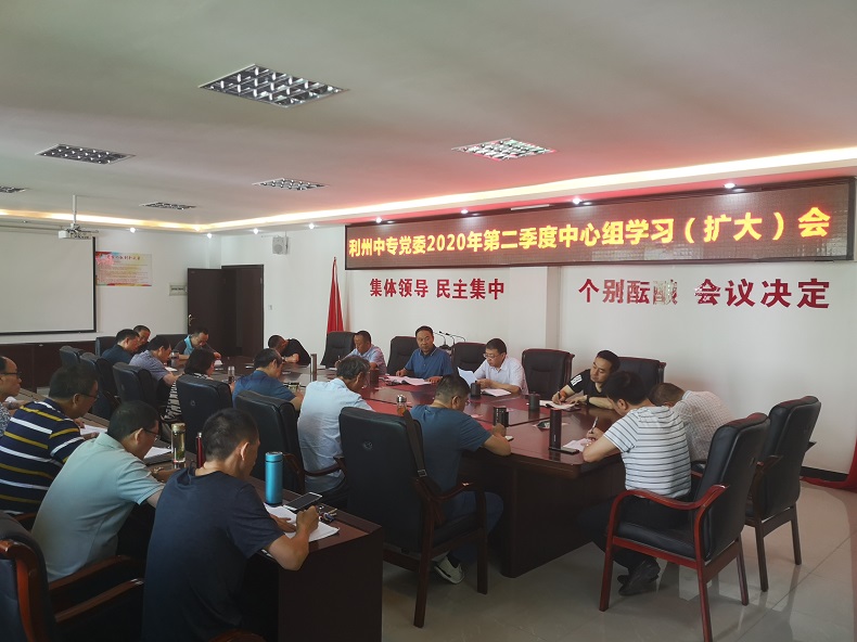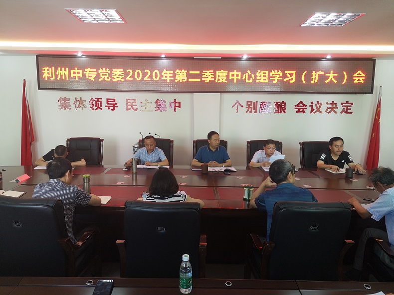7月12日,利州中专党委召开第二季度中心组学习扩大会议。除党委班子外,全体中层以上干部也参加了学习会议,会议由党委书记杜建新主持。