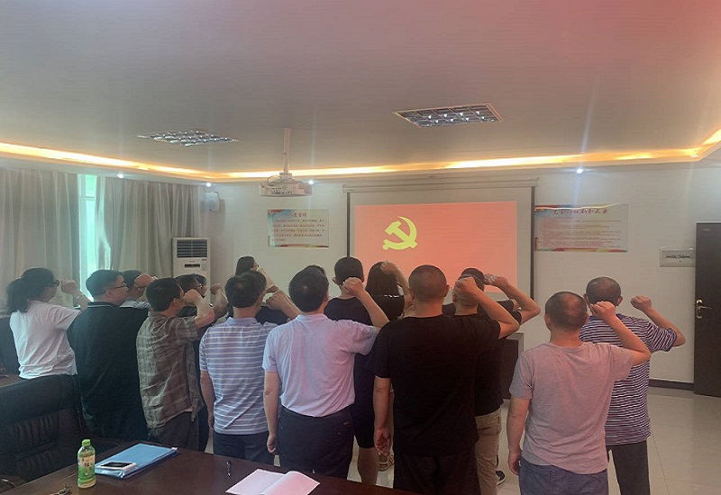 活动开始,为牢固树立党员的党性意识,不忘初心,牢记使命,全体参会党员面对鲜红的党旗,紧握右拳,以昂扬的斗志和饱满的热情,铿锵有力地宣读了入党誓词,重温对党庄严而神圣的誓言。