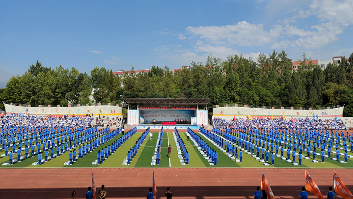 2020年9月4日上午,利州中专在学校田径场隆重举行2020年秋季开学典礼暨入学教育及军训结业典礼,学校全体教职工、三个年级2800名在校学生、部分家长代表共同参加了典礼。典礼由团委杨虹老师主持。