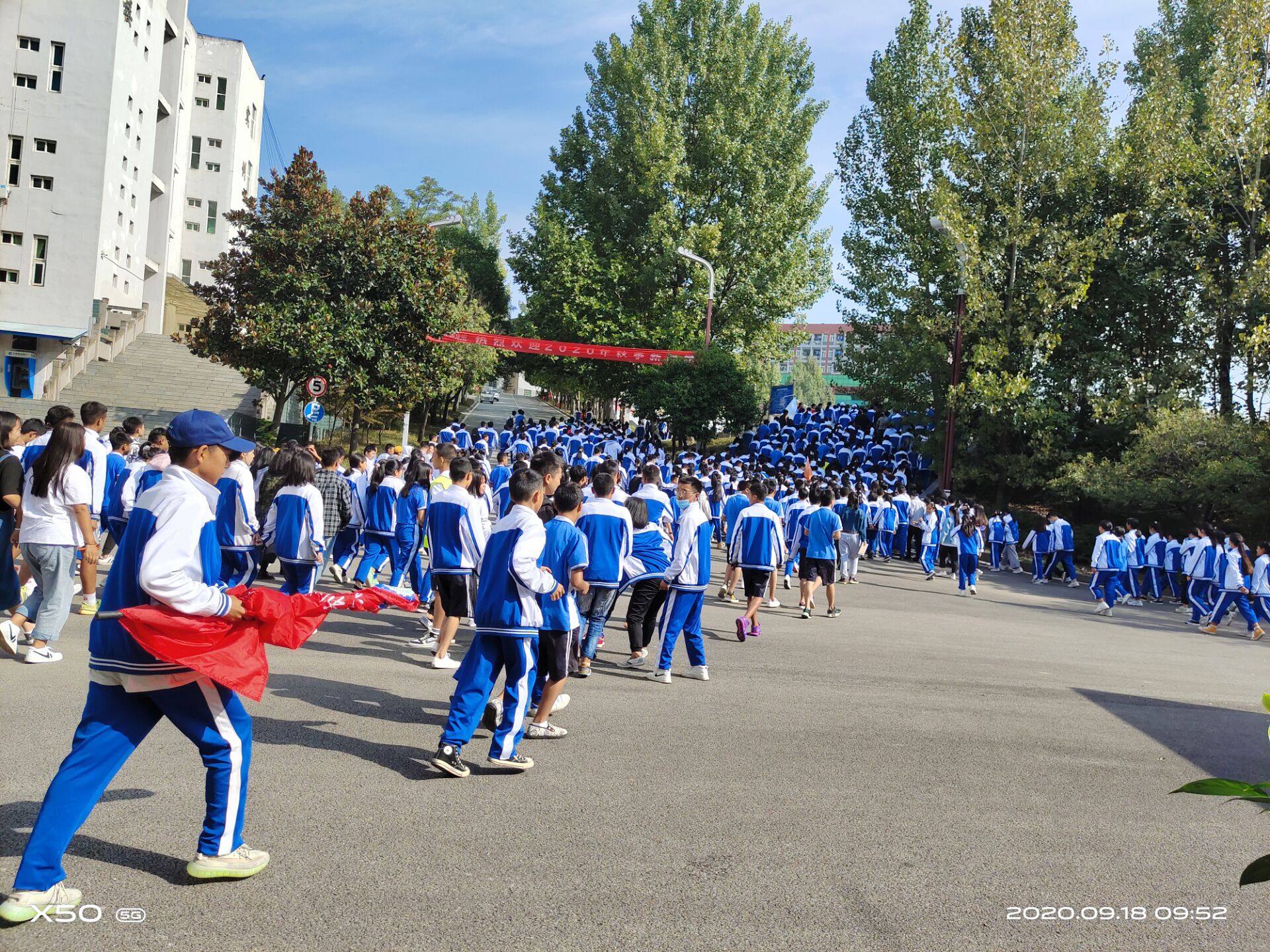 师生们在规定时间内到达操场列队清人后,首先学生科王兴兵科长主持了“铭记历史、牢记使命”的“9.18”纪念教育活动;随后安??聘涸鹑死钋迦员敬窝萘纷髁说闫啦⑶康髁私艏碧由杏ψ⒁獾囊恍┦孪?,对师生提出了安全工作的具体要求。