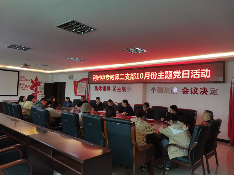 ? ? ? 10月28日下午,根据校党委的统一安排部署,教师二支部在学校行政楼会议室组织开展10月份主题党日活动,支部书记邓松主持会议,学校党委杜建新书记参加此次活动。