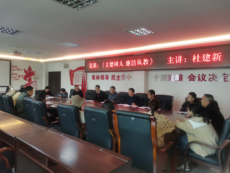 会议首先由杜建新同志以《立德树人、廉洁从教》为主题向支部党员讲了一堂教育专题党课。他指出:习总书记在10月全国教育大会上明确提出,我国是中国共产党领导的社会主义国家,教育必须把培养社会主义建设者和接班人作为根本任务。作为一线教育工作者,必须要坚持党的政策方针。要教育学生坚定理想信念,增强四个“自信”,培养学生爱国主义情怀,弘扬社会主义核心价值观,把坚持立德树人,培养德智体美劳全面发展的社会主义接班人和建设者作为教育目标。同时他还结合学校关于党风廉政建设调查问卷中相关问题指出:广大党员同志要有别于普通群众,党员干部要有别于普通党员,要立足岗位,发挥党员先锋模范作用,要有从我做起,从现在做起,从点滴做起的求实精神,要有实事求是和高度负责的科学精神,要有克服困难挫折的进取精神,做好本职工作。要增强规则意识,坚守职业底线,守住法律政策底线,守住道德底线,立德树人,廉洁从教。随后大家就杜书记的讲课展开积极探讨,此次党课给大家不光提了醒,更提了神,为今后的工作指明了方向,鼓足了干劲。