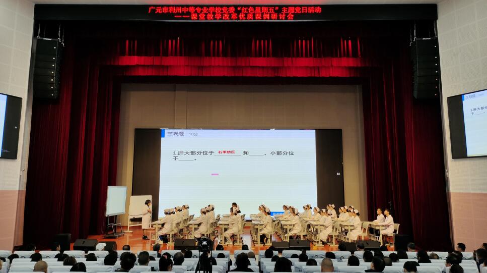 为加强学校党建工作与教育教学业务的进一步融合,发挥党员教师的示范带头作用。2020年10月28日下午,教师一支部邀请学校党员名师王文老师在学校学术报告厅为全体教师献上了一堂标准的示范课。教科室彭升齐主任与医卫教学部主任、广元名师李永老师一致认为,王老师的示范课是一堂课堂完整规范的示范课,是一堂良好教风教态的示范课,是一堂改革创新的示范课,是一堂信息化教学应用的示范课。