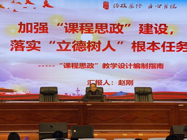 课程思政是一种教育教学理念,是一种思维方式,是对专业课程中蕴含的文化基因和价值范式的提炼。赵刚副校长从八个方面讲解了课程思政,围绕“培养什么人,怎样培养人,为谁培养人”的根本问题,具体阐述了课程思政的目的和意义;重点分析了课程思政的内容,教师需身正为范,以自身的言行影响学生,强调专业伦理和学习伦理,以社会主义核心价值观为标准要求学生;在开展课程思政的过程中,不同的课程类型需要有自己的专业特色和要求,利用好思政课程的重点教材,创新教学模式,并通过对课程思政案例讲解,具体形象的的向教师展示了课程思政的具体做法。