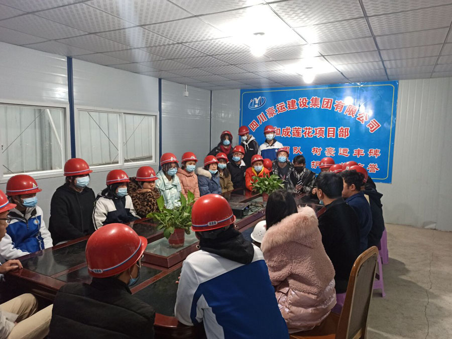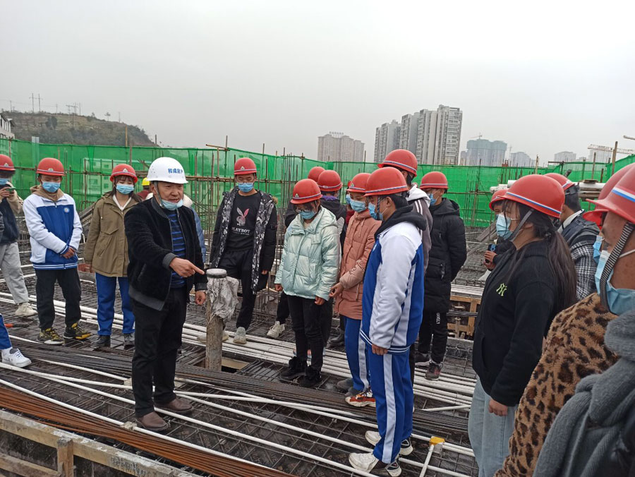 为进一步培养我校建筑类专业学生专业兴趣、巩固专业知识、拓宽学生视野、提高社会实践能力。2020年12月8日下午,在农林建筑教学部邓松主任的组织下,建筑专业课教师带领20级工程造价、19级建筑工程施工2个班共84名学生戴着口罩,来到四川豪运建设有限公司的和成莲花项目工地,进行20级工程造价班走进建筑专业、19 级建筑工程施工专业施工现场综合实习,以及我校的建筑专业老师与四川豪运建设有限公司的技术负责人员进行专业教学交流。进场前,邓松主任就本次实训任务和现场安全作了详细要求,同学们满怀期望、人人佩戴安全帽、个个精神抖擞。