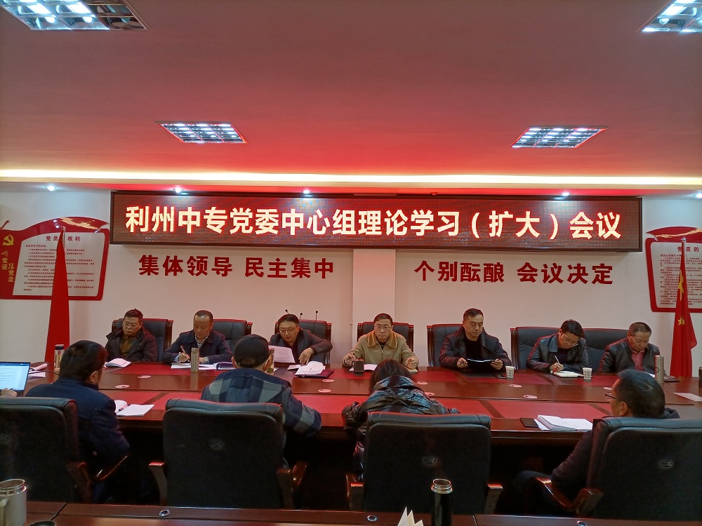 2月27日,利州中专党委召开中心组理论学习(扩大)会议,中层以上干部参加会议,校党委书记杜建新主持会议。