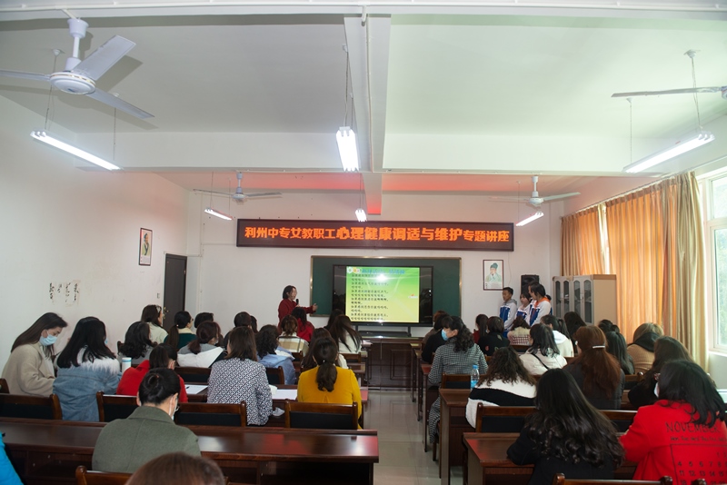 李小蔓老师从心理健康及标志、女教师的压力源、女教师的自我心理调适三个方面进行了讲解。她说,情绪的真正来源是内在的信念系统,即信念、看法、价值观、解释,外在的人事物只是诱因。要想做到真正的管理情绪就是要调整思维、改变心态。随后开展了心理测评,对我校女职工进行心理“体检”。全体女教师积极参与,相信本次讲座有助于我校全体女职工学会调节生活、工作中的情绪,做情绪管理的主人,积极健康工作,用自己的行动诠释教育的真谛,为广元职业高地贡献力量。