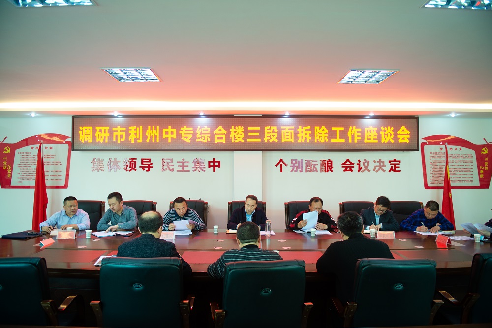 3月29日下午,市政府副秘书长李庆华带领市教育局、市住建局、市机关事务服务中心、利州区住建局等部门到利州中专专题调研综合楼三断面拆除工作。