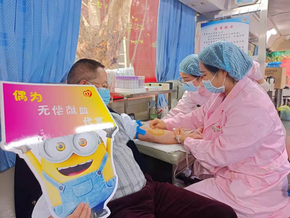 学校年过半百的工会副主席马健充分发挥模范带头作用,成为第一个走上献血车的老师,他的献血量达400ml。这只是马老师参加众多无偿献血活动中的一次,从2015年至今,他已累计献血1200 ml。
