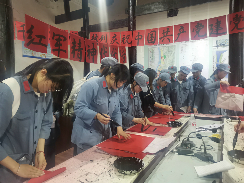 研学第二站,大家来到了红色圣地旺苍“中国红军城”, 体验了编草鞋、打靶、运粮草、练书法实践课程,并观看了纪念中国共产党建党100周年纪录片,参观了革命遗址。生动的课程、丰富的文献图片,让学生了解了红军的光辉历史,在心中刻下了红色文化烙印。