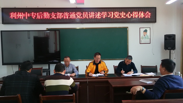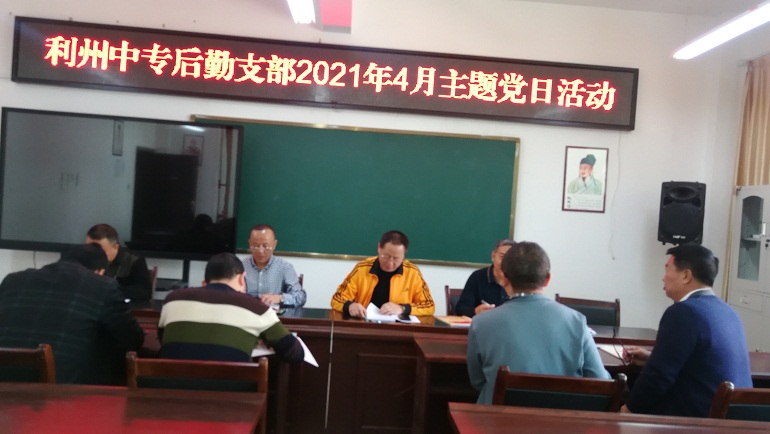 2021年4月30日上午,后勤支部在学校三楼会议室开展四月份主题党日活动,该活动以党史学习教育心得交流为主题,参会党员逐一发言,畅谈学习体会。活动由支部书记马健主持。