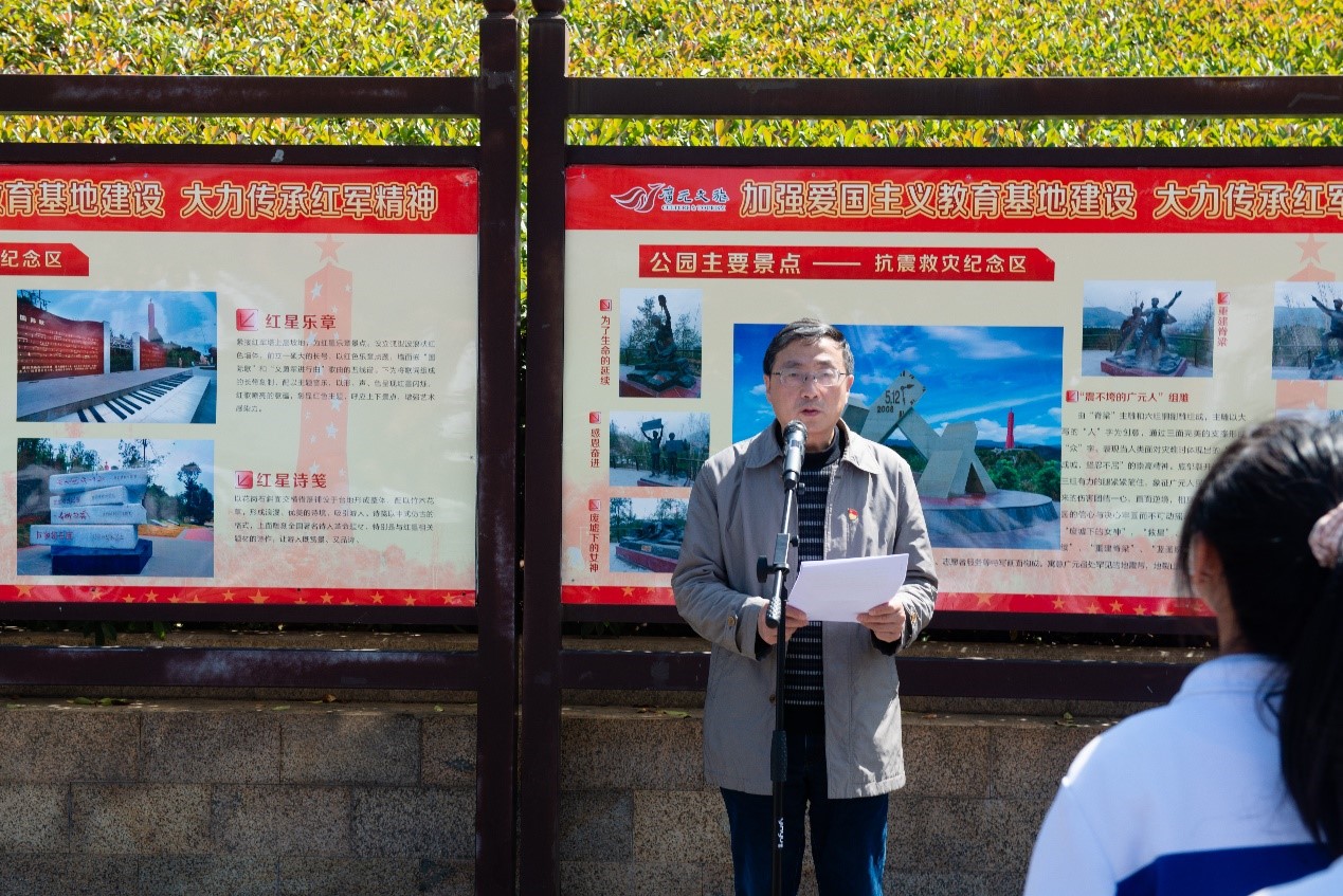 在宏伟的“红军塔”前,学校党委委员、副校长赵刚以讲党课的方式,为全体师生详细讲述了红星公园展现的红色文化、革命历史和抗震救灾的感人事迹,鼓励师生要继承和发扬革命先烈艰苦奋斗的优良作风和不屈不挠的斗争精神,加强党史学习教育,并从中汲取了智慧力量,真正做到学史明理、学史增信、学史崇德、学史力行。