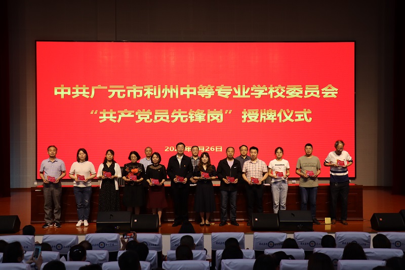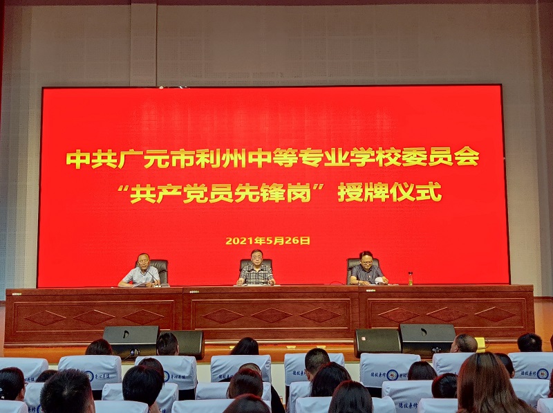学校党委委员、副校长苏克难宣读了《中共广元市利州中等专业学校委员会关于设置“共产党员先锋岗”的决定》(广利中专党委〔2021〕21号)。学校党委班子成员向32位同志颁授了“共产党员先锋岗”座牌。