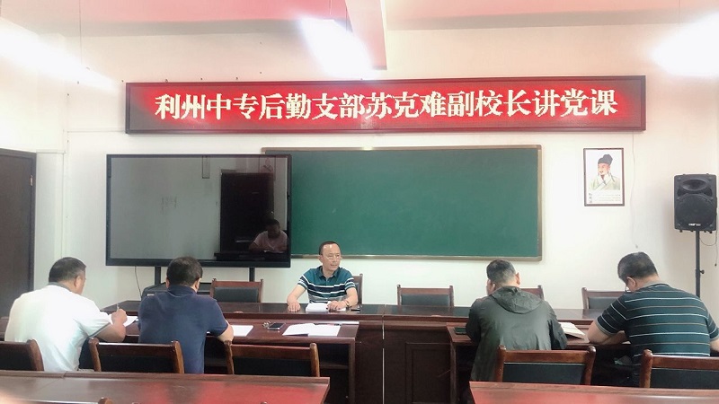 根据学校党委工作安排,2021年5月28日上午,后勤支部在三楼会议室开展了5月份主题党日活动,支部全体党员参加,学校党委委员苏克难同志讲党课。活动由支部书记马健主持。