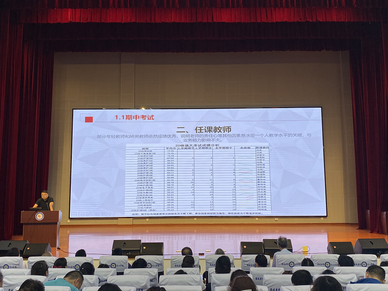 会上,教务科副科长赵星圻对期中考试和半期教学检查情况进行分析和通报。针对期中考试,赵星圻指出,班主任和任课教师在学校教风、班风、学风的“三风”的建设中发挥着重要作用,需不断强化合作、形成合力,在全校营造各个层面“比、学、赶、超”的良好氛围。针对教学检查,赵星圻强调,新时代的课堂不能因循守旧、故步自封,教师要发挥教育机智,借助信息化手段,抓住学生心理,改变课堂形式,让课堂更加有趣、更加高效、更有成效。
