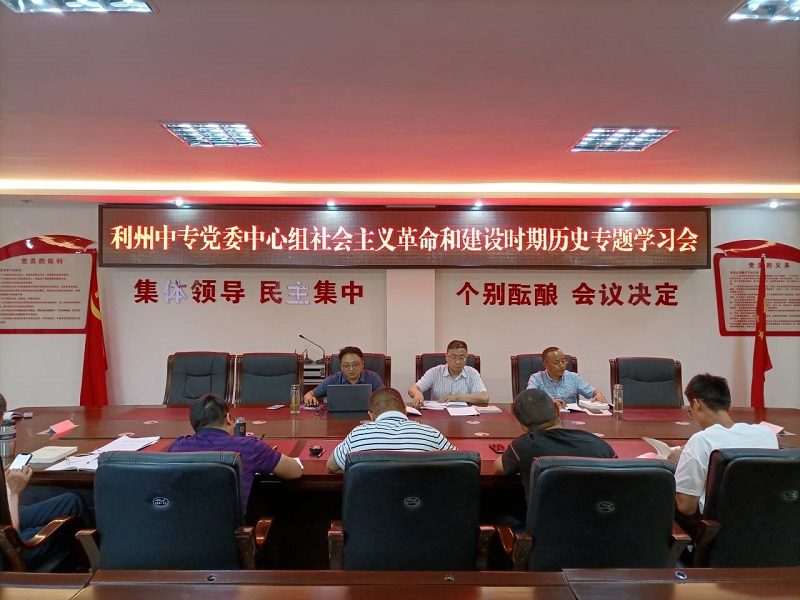 6月15日,利州中专在学校行政楼四楼会议室召开党委中心组社会主义革命和建设时期历史专题学习会,学校党委班子及各支部书记参加学习,副校长赵刚在会议上主讲。
