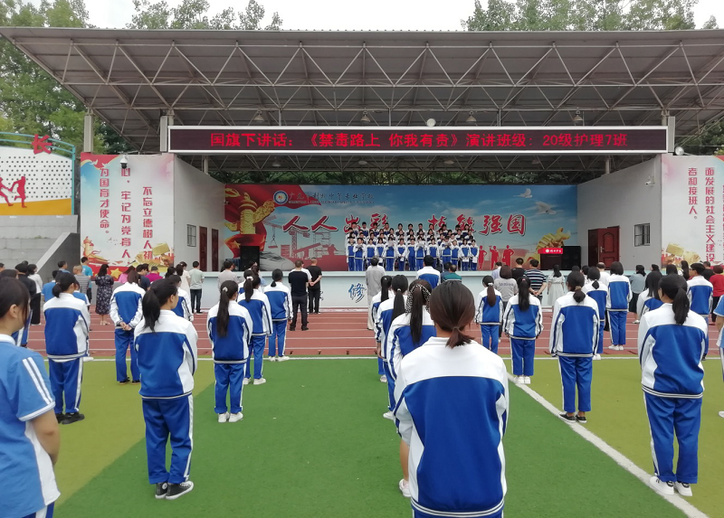 首先,20级护理7班开展了以 “禁毒路上、你我有责”为主题的国旗下讲话。“少年兴则国家兴,少年强则国家强”,同学们铿锵有力的齐声诵读,向师生发出“防毒拒毒,从我做起”的禁毒倡议,希望大家远离毒品,养成良好的生活习惯。