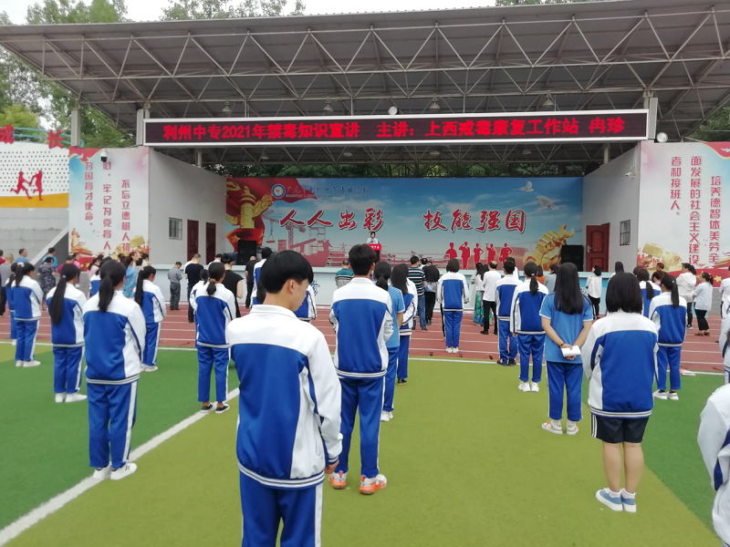 其次,上西戒毒康复工作站冉珍老师结合毒品的种类、社会危害、禁毒历史、毒品预防等内容与全校师生作了全面交流,并就毒品预防教育向师生提出了三点要求和希望。