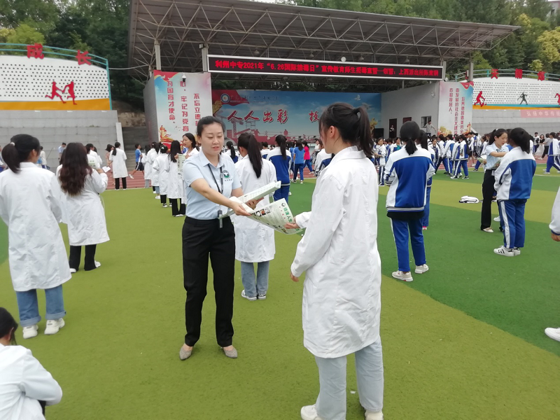同时,上西戒毒康复工作站工作人员还深入师生队列进行了禁毒教育现场答疑,并分发了近千份宣传材料。