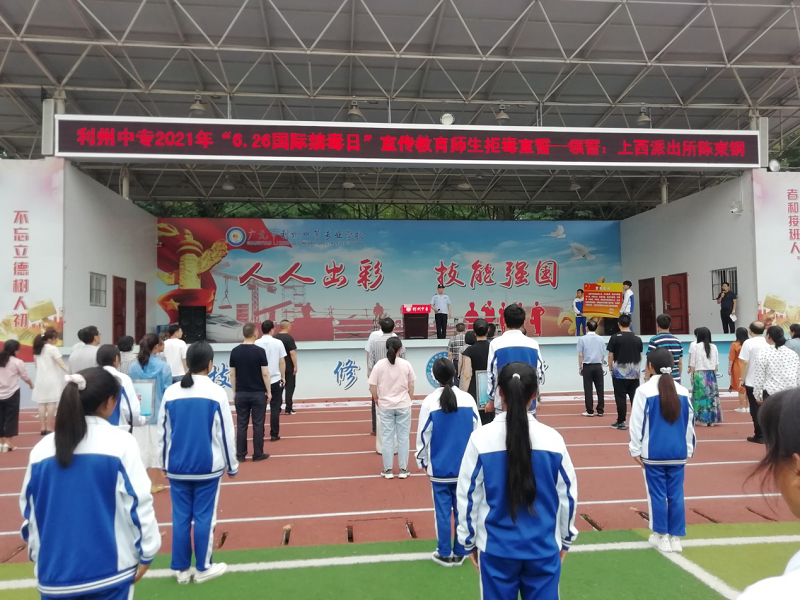 在第34个“6.26”国际禁毒日来临之际,为进一步加强校园法制和禁毒宣传教育力度,增强师生拒毒防毒意识,学校近期陆续开展班级禁毒教育课、禁毒主题班会、禁毒手抄报比赛等活动,6月21日上午,学校在校园防灾减灾应急疏散演练及升旗仪式后,又开展了系列禁毒教育活动。
