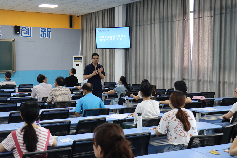 为推进我校护理专业国际化合作办学进程,拓宽专业教师视野,7月2日,我校在大数据产业中心二楼会议室开展了护理专业教师国际化师资培训,学校校级领导、中层干部、教研组长、广元名师及全体护理专业教师参加培训。本次培训由北京中思远信息科学研究院王青博士主讲。