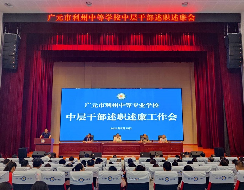 7月15日上午,利州中专在学校多功能厅召开中层干部述职述廉暨期末教职工大会,校党委书记杜建新主持会议,全体教职工参加会议。