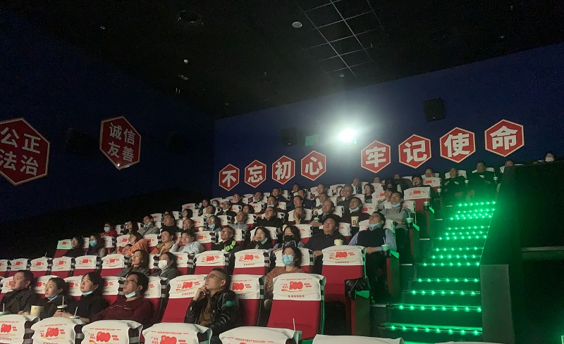 在党委班子带领下,全体党员佩戴党徽,整齐列队,有序落座。长达三个小时的观影过程中,全体党员为革命先辈们悍不畏死、英勇顽强的革命英雄主义所感染,为先烈们积极乐观的革命乐观主义精神所感染,大厅里时时响起热烈的掌声,这是党员们发自内心对先烈的崇敬。