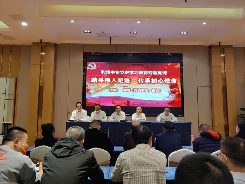 党委书记、校长赵刚以《踏寻伟人足迹 传承初心使命》为题,为全体党员上了一堂生动的专题党课。赵刚同志提出:一是落实“三同”精神,即党务工作和业务工作同部署、同落实、同考核;二是理清三个关系,即理清工作与家庭的关系、同事之间的关系、师生之间的关系;三是促进三个方面的发展,即骨干教师向党员发展、优秀党员教师向名、特、正高级教师发展、优秀党员向管理干部发展。他要求大家,在伟人革命精神的感染下,在习近平新时代中国特色社会主义思想的指引下,积极工作,勇于创新,为把学校建设成全省知名的中职学校而努力奋斗。