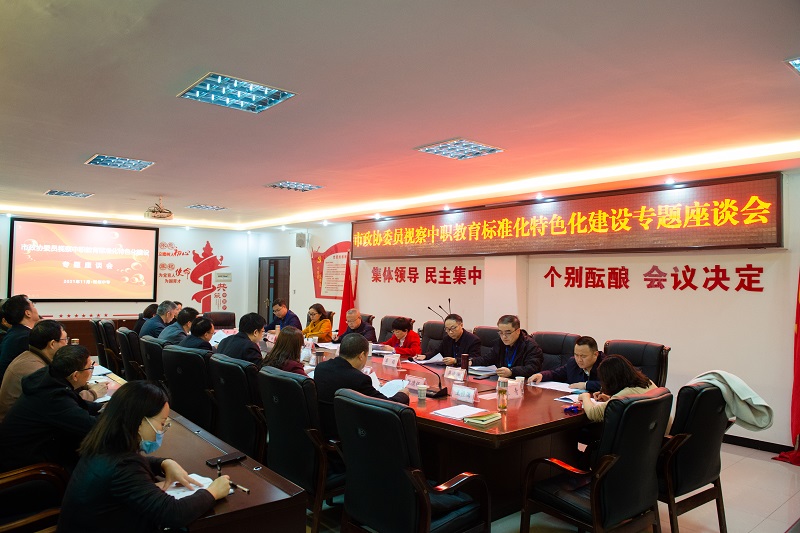 市政协常委、教科医卫体育委主任张建强主持召开视察中职教育标准化特色化建设专题座谈会。谢正臣副局长汇报了全市中职教育标准化特色化建设工作情况,利州中专党委书记、校长赵刚等作为中职学校代表围绕学校高质量发展作了专题汇报。与会市政协委员积极建言献策,围绕市中职教育标准化特色化建设提出了针对性强、切实可行的意见建议。