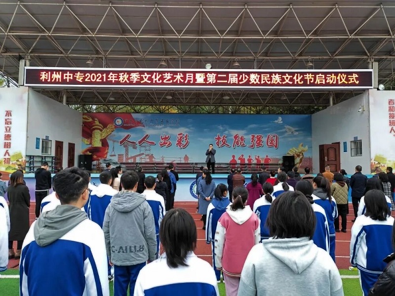 为深入贯彻落实习近平总书记关于民族团结进步重要论述综述,扎实推进铸牢中华民族共同体意识主题教育实践活动,大力营造“民族团结一家亲,同心共筑中国梦”的和谐校园氛围,着力打造特色德育品牌活动,在广元市教育基金会的大力支持下,利州中专于2021年11月举办了第二届少数民族文化艺术节活动。