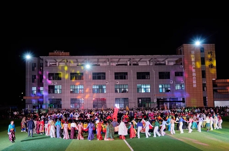 最后,由21高检等班级带来的10个民族特色节目,充分展示了中华民族优秀传统文化,将现场师生激情点燃,田径场成了一片欢乐的海洋,在现场气氛的渲染下,学校领导、老师、各族学生代表手牵手,围着篝火,载歌载舞,彝族的蹀脚舞和藏族的锅庄舞让身在异乡求学的孩子们感受到了家的温暖。活动在师生齐唱《爱我中华》歌舞声中落下帷幕,也为学校的第二届少数民族文化艺术节的画上了圆满句号。