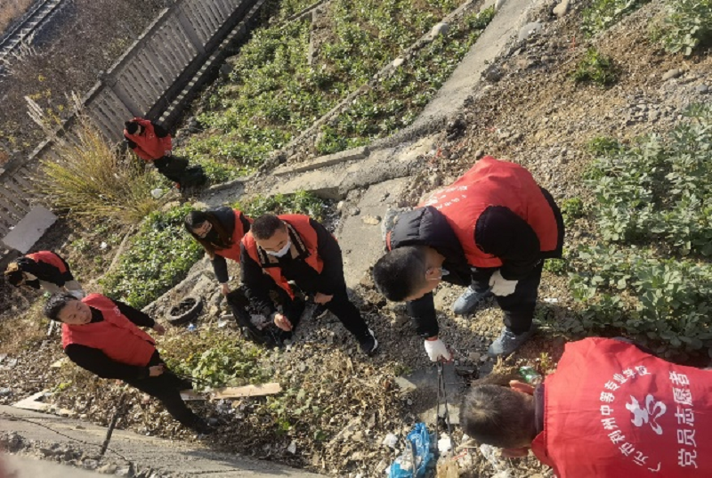在支部书记邓松同志的带领下,大家身着红色党员志愿者服装,手持铁钳和其他劳动工具,一路向前,爬坡下坎,捡垃圾,清杂物,山坡上、水渠边都是大家忙碌的身影,不一会儿塑料、烟头、纸皮被大家装进垃圾袋中,归拢到指定地点。冬季防寒的衣服略显臃肿,但丝毫没有限制大家麻利的双手,经过两个多小时的劳动,换来了社区铁路周边洁净的环境卫生,受到百姓的一致点赞。