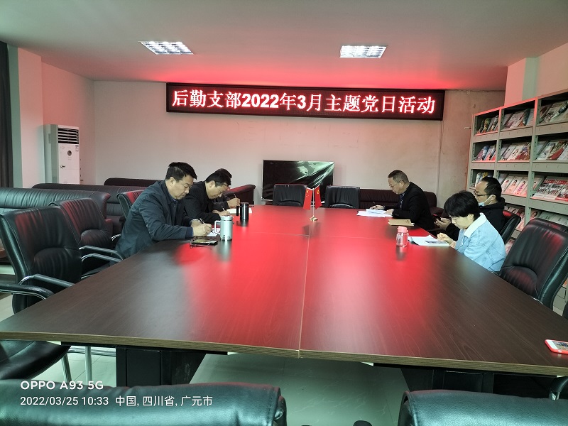 2022年3月25日上午,利州中专后勤党支部在学校三楼会议室开展3月主题党日活动,认真学习全国“两会”精神。活动由支部书记马键同志主持。