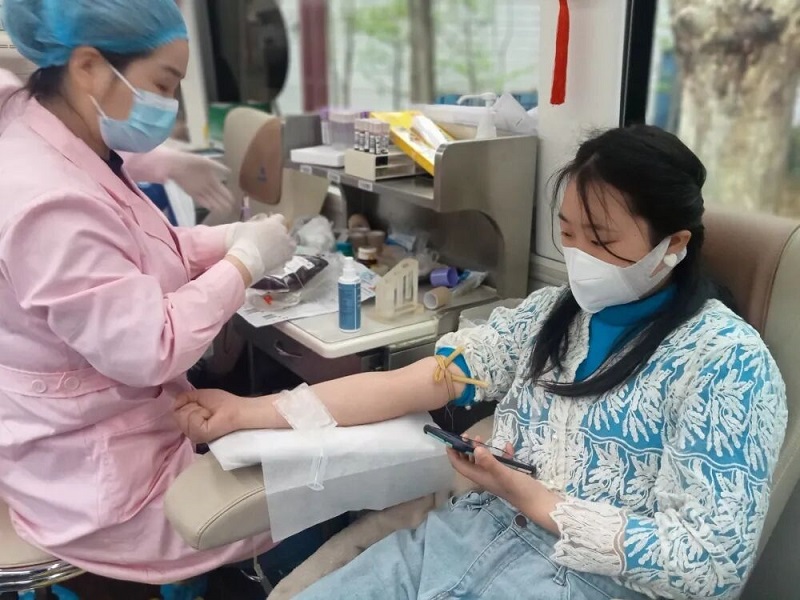 活动现场,人潮涌动,志愿者们忙着拉横幅、搭桌子,号召大家积极献血。学校师生在他们的指导下,顺利完成填表、体检等献血前的准备工作。献血车内,医护人员一边熟练地采血,一边叮嘱师生:“采血后不要剧烈运动,要补充营养。”随着一包包血浆进入临时血库,大家为需要帮助的病人送去了希望,传递着温暖。