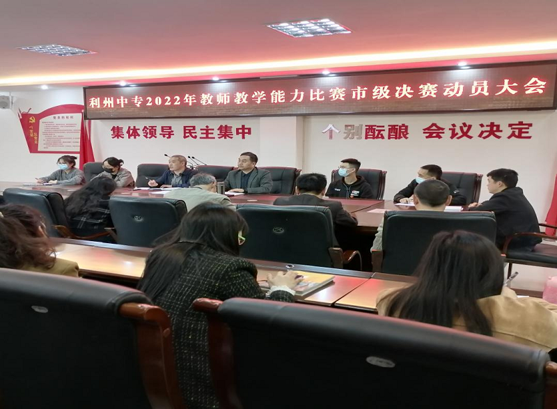 会上,组织学习了《广元市教育科学研究所关于2022年广元市中职学校教师教学能力比赛决赛有关事项的通知》,明确了比赛的时间、地点及比赛方式。对赛前准备工作进行了周密的部署,对参赛注意事项进行了详细的讲解,对评委工作提出了具体的要求。要求大家严格按照比赛要求严谨规范地做好相关准备工作,以饱满的精神状态、最佳的素质形象展示学校最好的精神风貌。