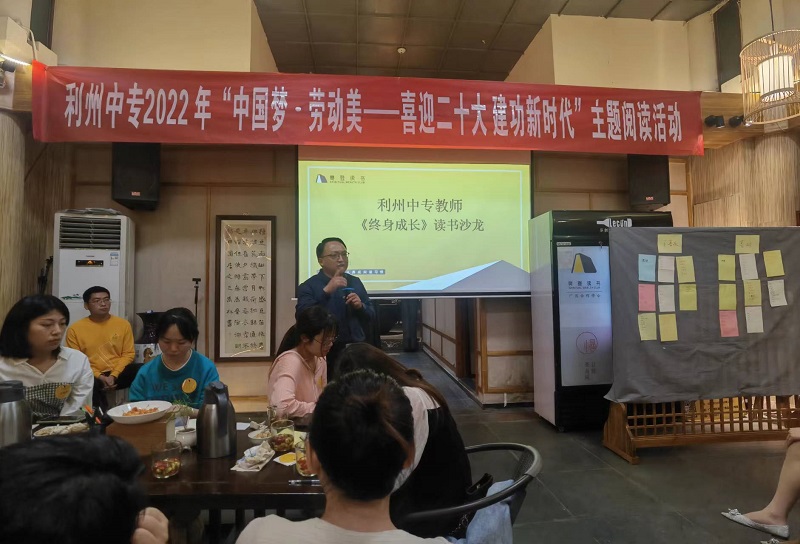 为全面贯彻落实党中央促进全民阅读工作部署,着力强化教职工思想政治引领。4月26日晚,利州中专举行“中国梦∙劳动美――喜迎二十大 建功新时代”教职工主题阅读活动。