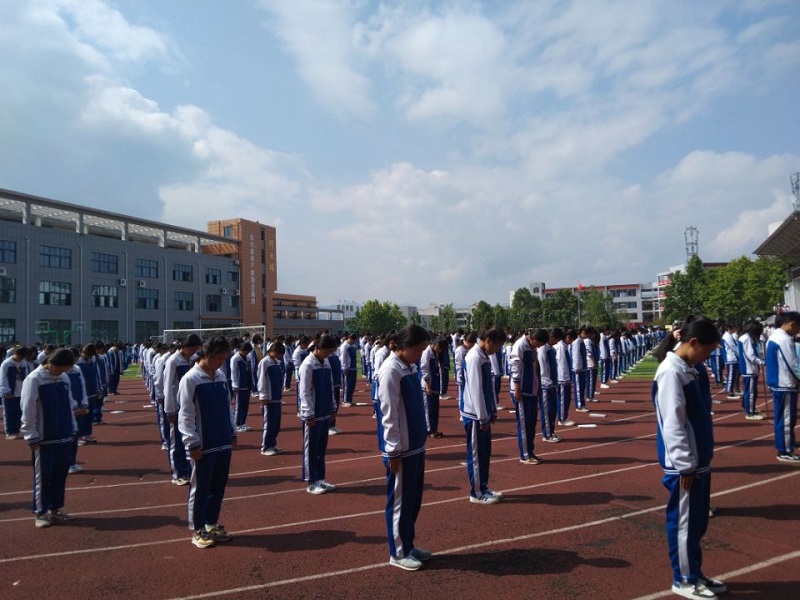 为缅怀逝者,在完成整队集合后全校师生为“5.12”地震中死难的同胞举行了默哀仪式。