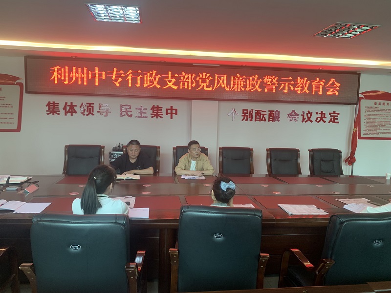 5月30日中午,利州中专行政党支部召开党风廉政警示教育会,会议由行政支部书记向珏主持。