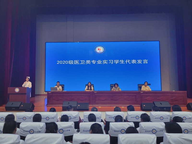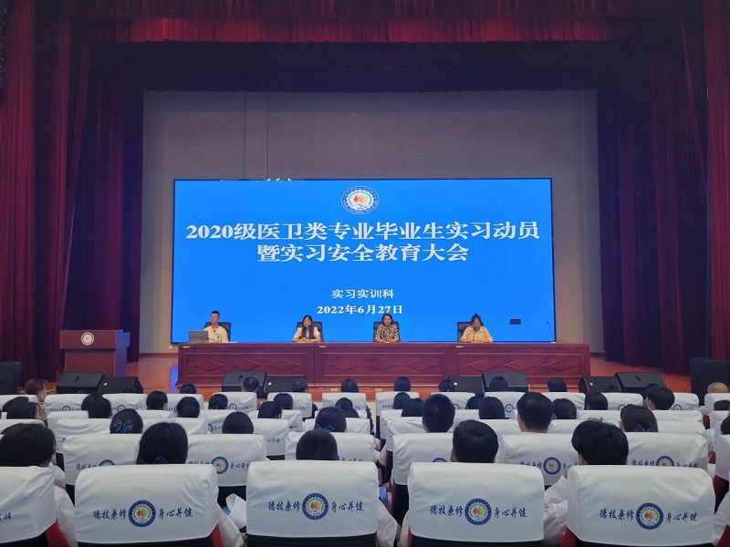 为深入贯彻全国职业教育大会精神,积极响应《职业学校学生实习管理规定》的相关要求,6月27日晚,实习实训科组织20级全体医卫类专业毕业生开展实习动员大会暨实习安全教育大会。学校党委委员、教学分管领导、工会主席郑敏,实习实训科科长马灿、实习管理教师虎利勇、实习各班班主任、实习带教老师及20级医卫类专业实习学生参加会议,会议由实习实训科副科长刘七宁主持。