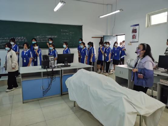 在医学实训中心,各解说老师围绕康复护理实训中心、医学检验实训中心、基础护理实训中心、专科护理实训中心、医学基础实训中心向学生进行了实训展示,学生们对此表现出极大的热情和好奇。