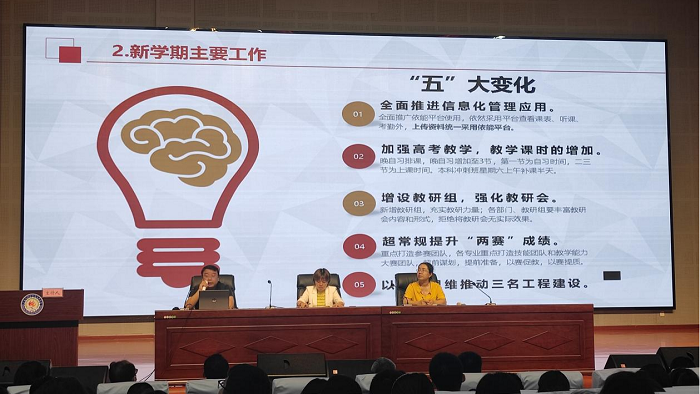 会上,教务科科长赵星圻就本学期工作重点及近期教学安排做了部署。他围绕本学期教学工作“五”大变化向全体教师作了具体说明,并对我校2022年秋季混合制教学工作进行了详细安排。教务科副科长刘洋对秋季的排课情况作了说明。