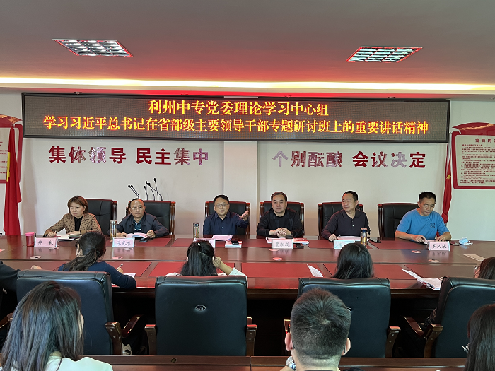 为深入学习习近平总书记重要讲话精神,迎接党的二十大胜利召开,9月28日,利州中专党委理论学习中心组召开会议,专题学习习近平总书记在省部级主要领导干部“学习习近平总书记重要讲话精神,迎接党的二十大”专题研讨班上的重要讲话精神,研究贯彻落实举措。