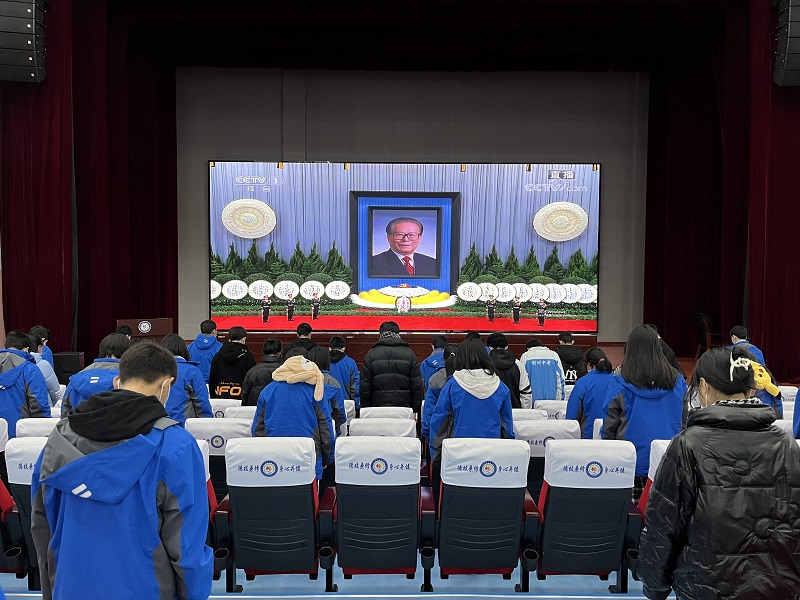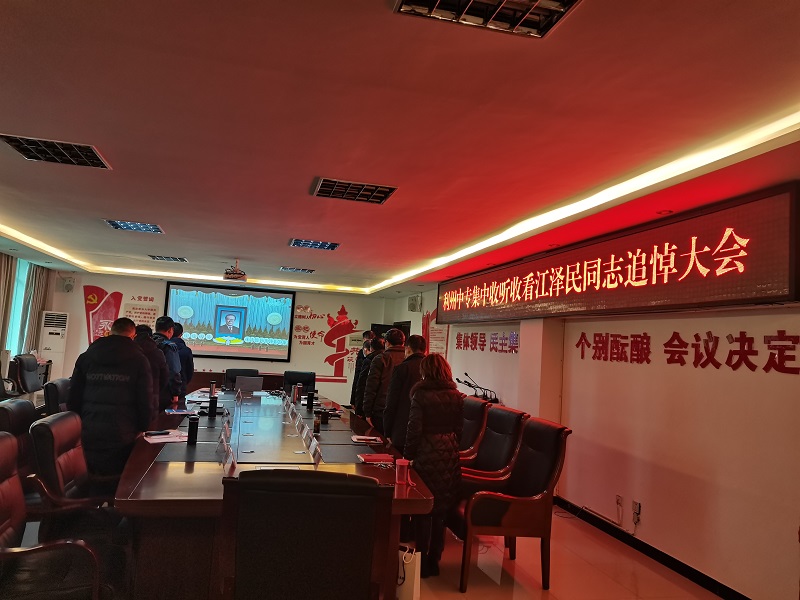 12月6日,利州中专全校师生收看江泽民同志追悼大会,校外学生由任课老师组织线上收看,校内师生集中收看。