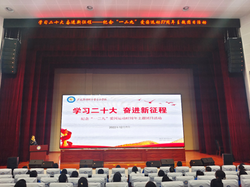 在全校上下掀起学习宣传贯彻党的二十大精神热潮之际,为进一步提升广大青年学生思想觉悟和政治素养,不断强化对优秀青年学生的培养和教育,增强团组织的凝聚力和战斗力。在纪念“一二?九”学生爱国运动87周年之际,学校组织开展了系列主题教育活动,全体学生通过线上、线下方式参加了活动。
