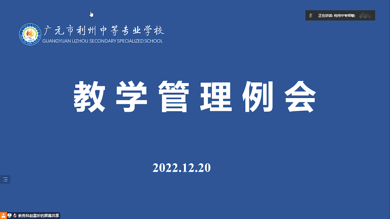 为更好地部署期末教学工作,12月20日,学校通过腾讯会议召开期末教学管理例会,总结本学期主要工作,部署近期工作重点。会议由教务科赵星圻科长主持,教学口全体中层干部、各教研组组长参加了本次会议。学校党委委员、工会主席郑敏出席本次会议,并作讲话。